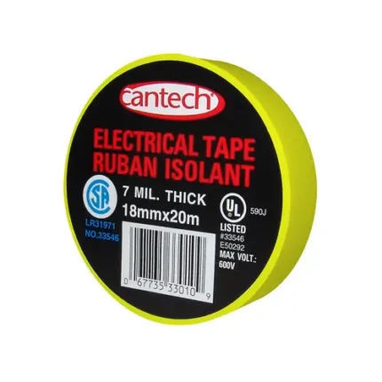 Vinyl Electrical Tape, Yellow, 18mm x 20m